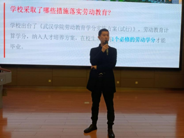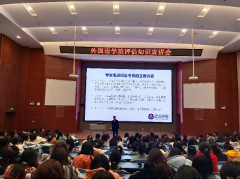接着,魏成杰老师对专家考察形式作了深入讲解,专家将会听取汇报学校的基本情况、考察学校的设备和环境、听课看课、进行座谈会、访谈部门和教学单位查阅资料和评议反馈。他特地强调学生在上课期间要注意课堂纪律,注重个人形象要充分展示外院学生的精神面貌,树立端正的学风,展现外院的风采。