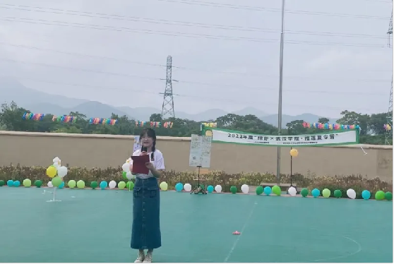 在二十一天的时间里,志愿者老师与学生们朝夕相处,培养了浓厚的师生情。志愿者代表陈文燕上台发言,她寄语同学们:“纵有不舍情,终有离别时。我们很庆幸可以成为你们童年的一部分。道阻且长,我们各自努力,期待人生更高处见!”