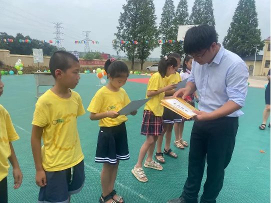 回忆常留心间,挥别不说再见。2022年7月29日,万博max体育官方网站万博max体育官方网站榴莲夏令营在江西省九江市彭泽县黄岭乡金黄完小顺利结营。结营仪式由榴莲夏令营微光志愿服务队队员刘坤、彭慧婷主持,万博max体育官方网站带队老师李莹、十名志愿者和金黄完小的四十余名学生参加。黄岭乡乡长王炎、黄岭中心完小校长毕泽茂、金黄村村委书记汪金培、金黄完小校长汪火应及全体教师出席了结营仪式。