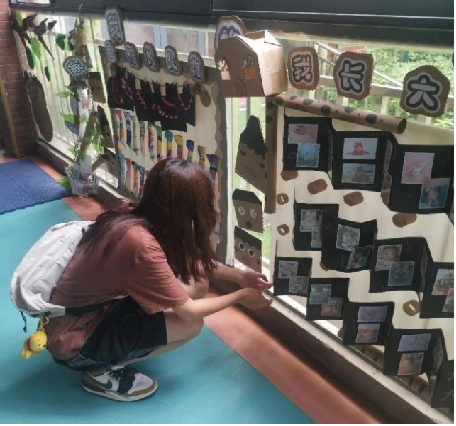 此外,志愿者们利用课间时间和小朋友们畅聊长大后的生活,为小朋友们粘贴最新照片,收拾运动用具,装饰文化墙......忙的不亦乐乎。