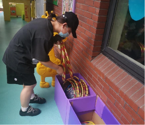7月8日,天气酷热,志愿服务者们早早来到幼儿园。一入园,看着一张张挂满了笑容的脸庞,汗流浃背的志愿者们顾不上擦去汗珠,便微笑着和小朋友们打起招呼。