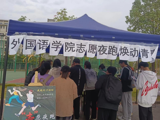 这次志愿夜跑活动,以“焕动青春”为理念,让同学们走出寝室,告别电视剧中的俊男美女,一同在操场欢聚,挥洒青春的汗水。大家在积极参加增强体魄,体会运动的魅力的同时也意识到除学习之外,身体健康也很重要。