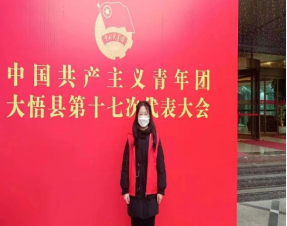 再次是中国共产主义青年团大悟县第十七次代表大会。作为志愿者的她感到非常荣幸,从填装文件,协助布置会场,到后期会议事项参与与协作,深刻地体会到了政府对家乡青年的期盼与鼓励,由衷地感受到当代青年应不懈努力,坚持奋斗,以微薄之力尽自身所能回报社会和家乡,不负众望。