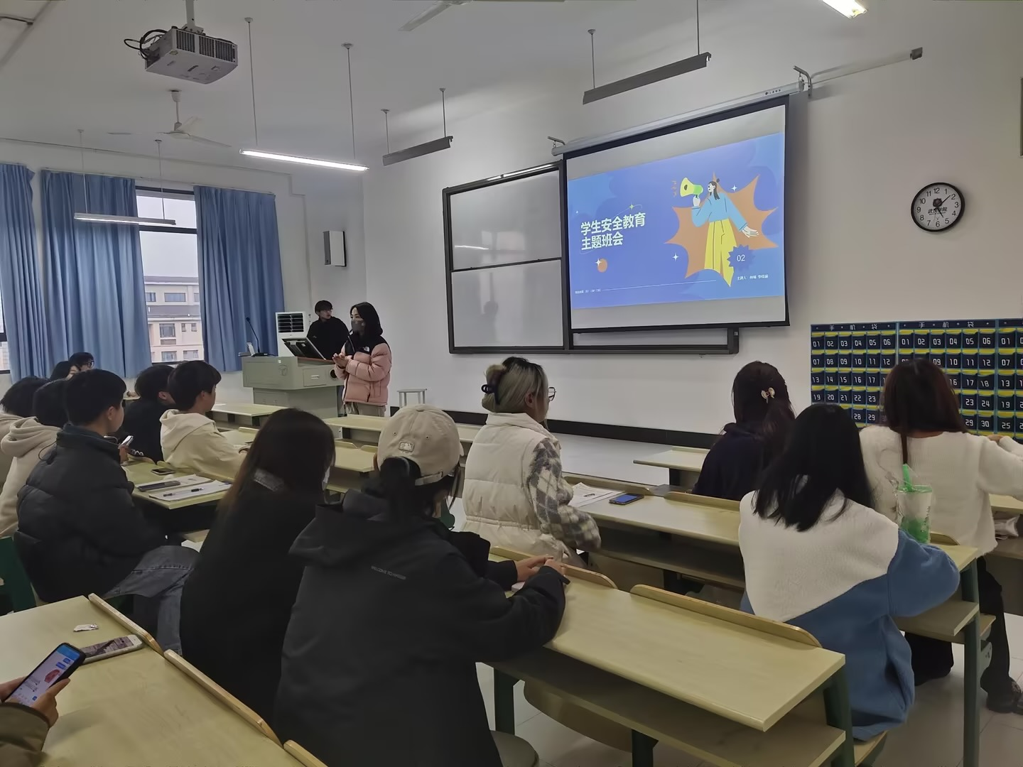 辅导员陈惠紫老师强调了召开本次班会的背景及重要性。随后,由副班长何睿带同学们学习消防安全等方面的PPT和视频,同学们进一步提高安全警惕,树立安全意识。班会还设计了安全知识互动问答环节,抢答PPT中的重点内容,回答正确可以获得小礼物,调动了同学们的积极性,也加深了同学们对安全知识的理解和记忆。
