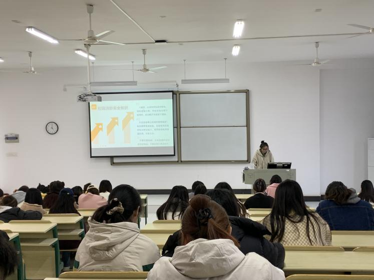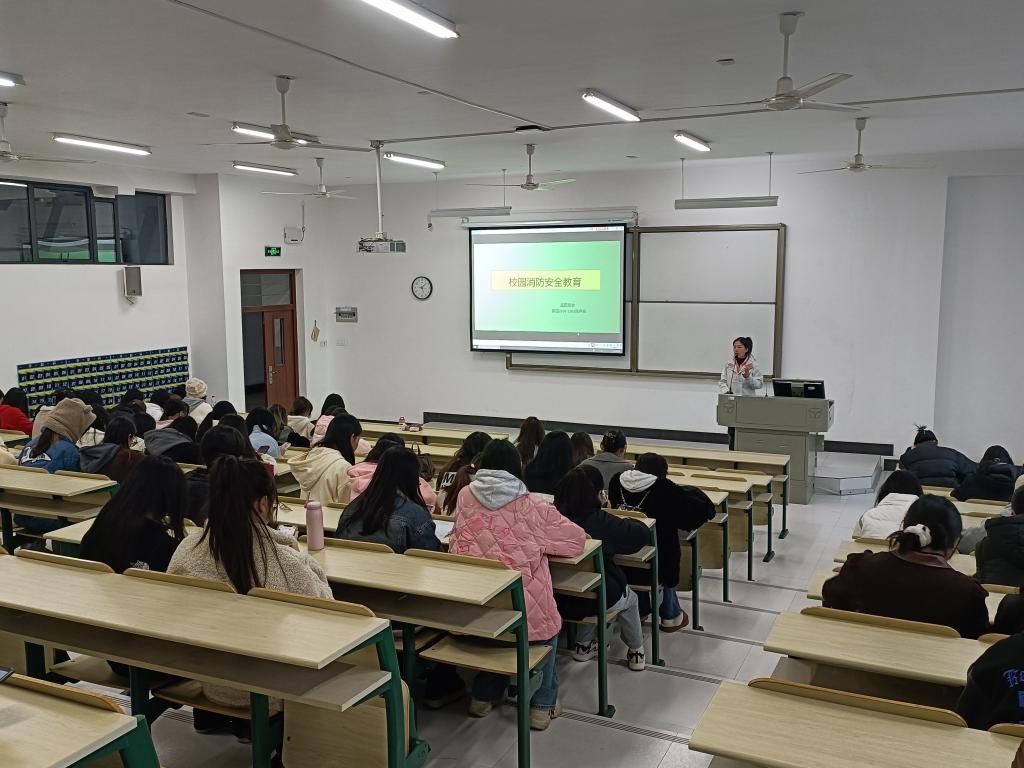(图为陈惠紫老师为商务英语2301-2302班宣讲消防安全知识)