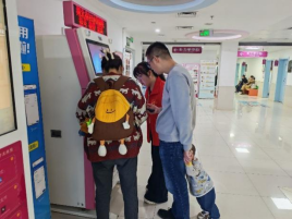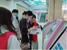 门诊大厅的各类自助服务机是志愿者们最忙碌的岗位。他们耐心细致,主动迎向每一位需要帮助的患者和家属。从“挂号缴费”“门诊预约” 到 “医保结算”,志愿者们熟练地讲解着自助设备的每一步操作流程,帮助许多不太熟悉医院智能自助设备的患者顺利完成预约、缴费和签到取号,极大地节省了他们的排队时间。