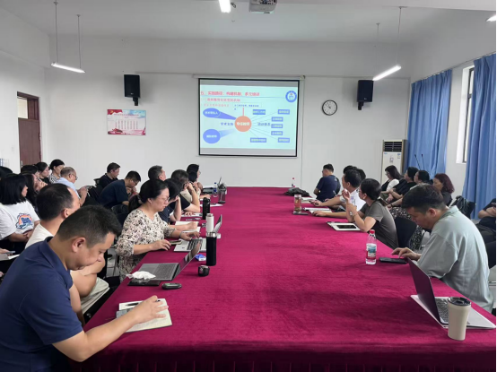 而后,陈金平分析了学院在大学英语、外语专业面临的双重挑战,在大学英语教学方面,尽管四级通过率有所上升,但学校在“十五五”期间高质量发展、国际化及申硕工作对学生的外语水平有更高的要求,并且四级通过率逐步进入瓶颈期,亟须借助新手段实现突破。在外语专业发展层面,受社会经济形势变化以及教育部学科专业设置调整优化相关政策的影响,外语专业面临着学科调整与社会认同的双重压力。面对挑战,陈金平明确指出“教师转型、数智赋能” 是学院的突围之路,当前形势下,教师数智化转型已不是选择题,而是生存题。民办高校赛道已从“马拉松” 升级为 “星际竞速”,唯有抢先拥抱AI,才能占据发展先机。教师数智化转型发展,既是应对外部变革的必然选择,也是驱动学院内涵发展的核心引擎,更是落实学校“十五五”规划的根本保障。