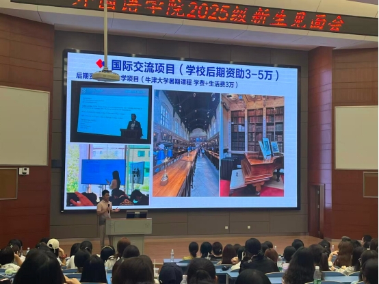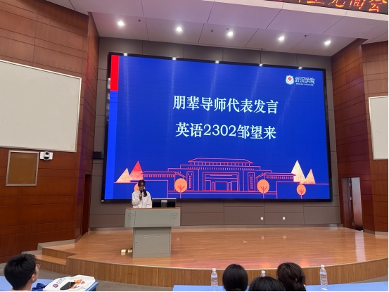 朋辈导师代表英语2302班邹望来也进行了分享。邹望来结合自身学习经历,为新生们提供了诸多实用建议,如合理规划时间、积极与老师同学交流等,助力新生们更清晰地认识大学生活。