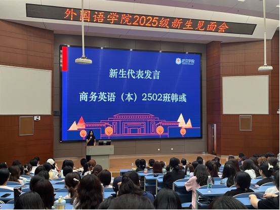 9月14日下午14:00,万博max体育官方网站万博max体育官方网站2025级新生见面会于中教2103教室如期开展。本次见面会由孟婧扬主持,党总支书记、院长陈金平,党总支副书记、副院长肖琴,副院长文声芳,团委书记陈惠紫,商务英语专业负责人、系主任蓝建青,英语专业负责人贺玲,英语系主任王丽峰,英语系副主任谢承凤、罗峰,商务英语系副主任阮广红,2025级辅导员柯纪宏、黄玲,新生班主任、朋辈导师以及全体新生齐聚一堂。