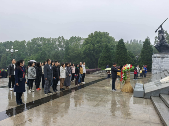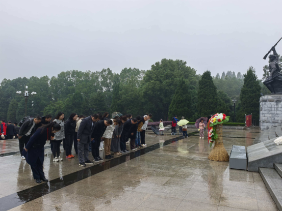 当日下午雨雾蒙蒙,随风飘洒,轻轻浸润着陵园的一草一木,团队怀着无比崇敬的心情,来到庄严肃穆的黄麻起义和鄂豫皖苏区革命烈士陵园。在巍然耸立的革命烈士纪念碑前,全体人员整齐列队,静默肃立,敬献花篮,并向在黄麻起义和鄂豫皖苏区斗争中英勇牺牲的十四万革命英烈深深三鞠躬,表达深切缅怀和无限敬仰。随后,大家参观了陵园内的历史纪念馆。纪念馆内翔实的史料和丰富的展陈,系统再现了鄂豫皖革命根据地波澜壮阔的斗争历史。最后,团队还参观了董必武纪念馆,深入学习中国共产党的创始人之一董必武同志的革命生涯和伟大贡献。