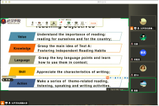 在8月16日的磨课活动中,课部主任文声芳老师就大学英语C(1)的所授单元Unit 7 Reading进行磨课,她以课程思政为指导,引导学生为中华之崛起而读书,以学生为中心,设计多种互动活动,锻炼学生的表达能力,始终贯穿任务型教学方法,明确每部分的任务。小组老师们就课程思政的角度、课程设计的方法展开了热烈讨论。