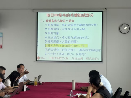 工作坊伊始,陈院长首先强调了项目申报书撰写的重要性。他指出,一份优秀的项目申报书是获得科研资助的关键。项目申报书的核心目的就是说服评委你准备做一项非常有意义的研究,所以需要清晰、准确地阐述研究项目的目标、内容、方法、预期成果等关键信息。随后,他以科研项目申报书的关键组成部分为切入点,为教师们详细阐释了项目书在撰写过程中需着重关注的要点。